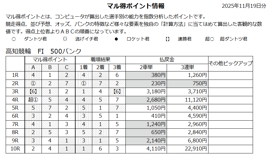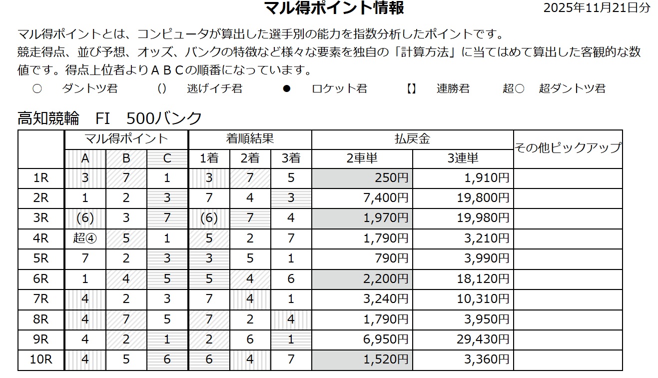 高知競輪 第14回 3日目 11月21日(金) マル得情報