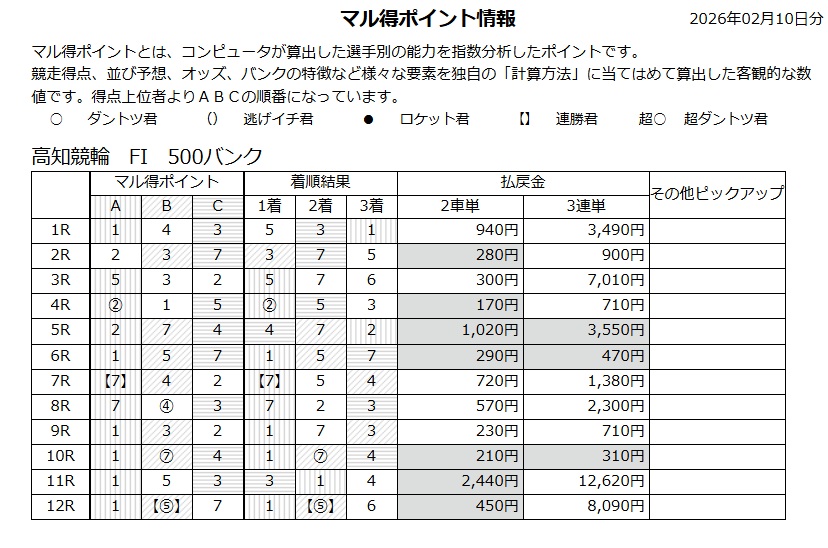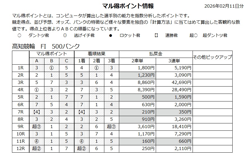 高知競輪 第7回 後節 2日目 2月11日(水) マル得情報