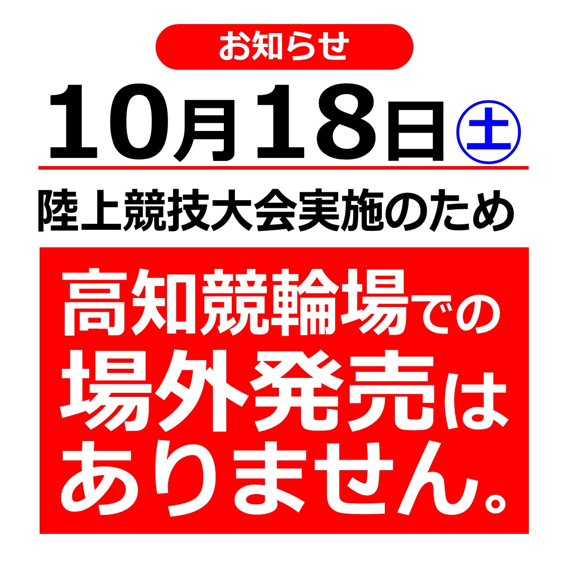 10月18日(土)の場外発売について
