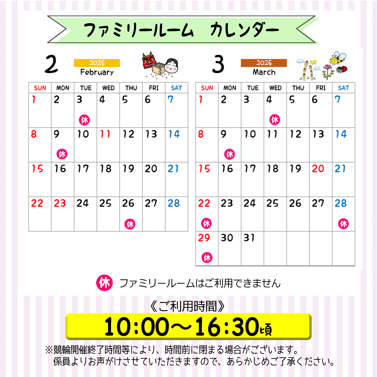 ファミリールームご利用時間等についてお知らせ